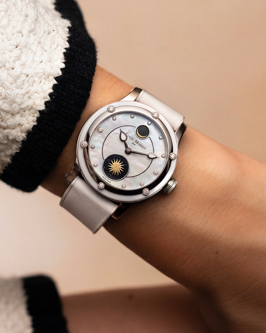 Les Ateliers Louis Moinet unveils the SKYDANCE, a long-awaited ladies’ creation steeped in poetry. A true horological gem, this timepiece unites two celestial bodies that have always marked the passage of time for humans: Sun and Moon.