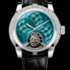 The unique pieces of the ILLUSION collection combine a mesmerising tourbillon with the choice of two remarkable guilloché patterns created by hand. The guilloché decorations are coated in vibrant colours – duck or emerald green, azure, and arctic – that play with the ambient light and thus create an illusion of movement and colours.