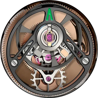 IMPULSION RGB pays tribute to the founding fathers of modern watchmaking, Abraham-Louis Breguet and Louis Moinet, inventors of the tourbillon and the chronograph respectively. It unites a fully exposed chronograph mechanism with the captivating presence of a flying tourbillon.