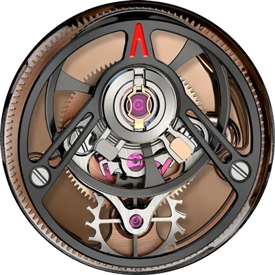 IMPULSION RGB pays tribute to the founding fathers of modern watchmaking, Abraham-Louis Breguet and Louis Moinet, inventors of the tourbillon and the chronograph respectively. It unites a fully exposed chronograph mechanism with the captivating presence of a flying tourbillon.